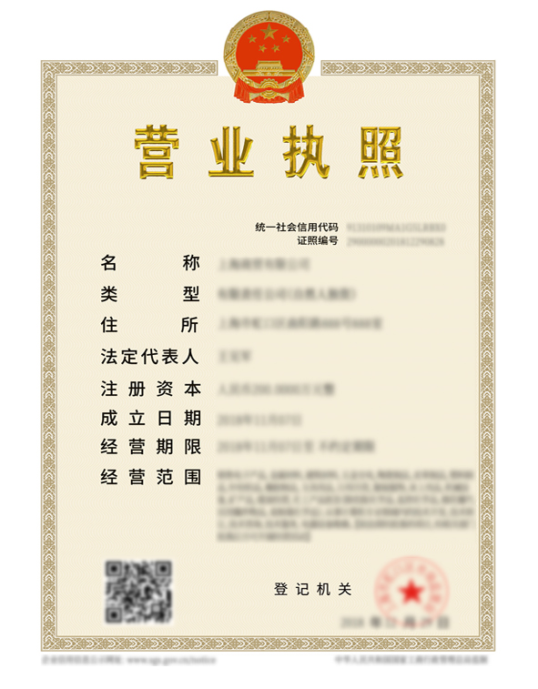 • 营业执照(正副本)